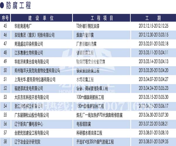 宏順建設(shè)工程有限公司是國家批準(zhǔn)成立的專業(yè)高空作業(yè)企業(yè):承攬過(國內(nèi).國外)煙囪新建、煙囪防腐、磚煙囪新建、煙囪改造、煙囪維修、煙囪脫硫防腐、煙囪拆除加高、煙囪滑膜等高空作業(yè)工程。具有“不搭腳手架 、 不需要停產(chǎn)”施工特點(diǎn)。